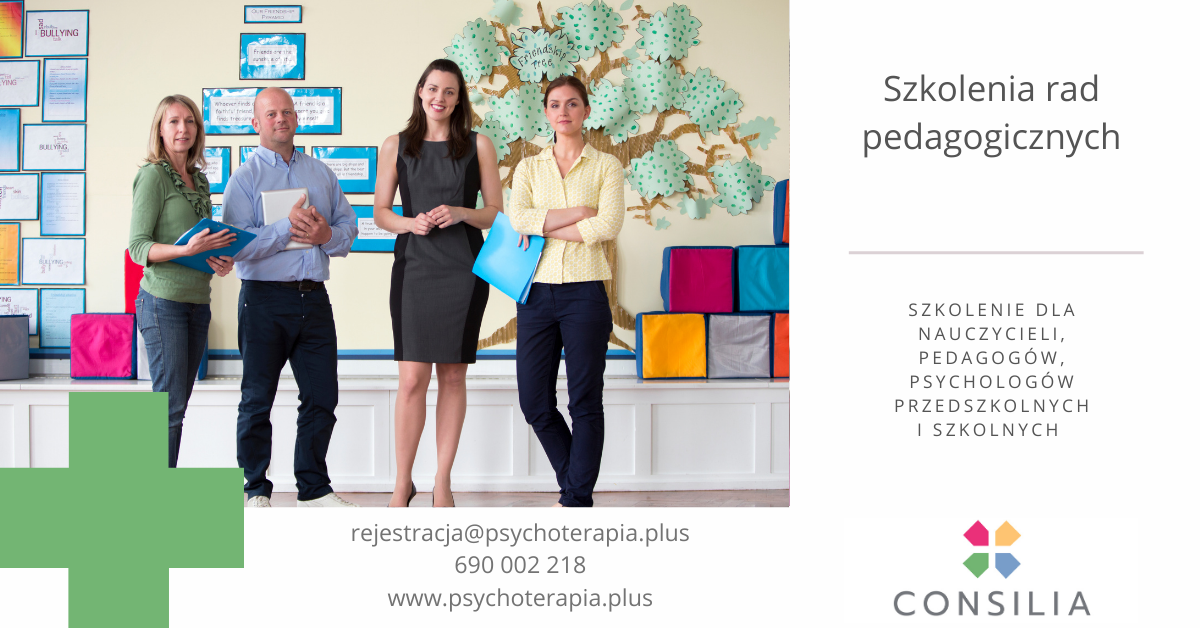 Profesjonalne szkolenia dla Rad Pedagogicznych stanowią ważny element rozwoju każdej placówki oświatowej. Pozwalają nauczycielom poszerzać kompetencje, wprowadzać nowe metody pracy oraz skutecznie reagować na wyzwania pojawiające się w codziennej pracy dydaktyczno-wychowawczej. Nasze szkolenia mają charakter praktyczny, angażujący i dopasowany do potrzeb konkretnej kadry. Celem jest nie tylko przekazanie wiedzy, ale przede wszystkim wyposażenie nauczycieli w realne narzędzia, które mogą wykorzystać od razu w swojej pracy z dziećmi i młodzieżą. Szkolenia prowadzone są przez wykwalifikowaną kadrę (psychologów, pedagogów, psychoterapeutów, specjalistów psychoterapii dzieci i młodzieży, certyfikowanych diagnostów) która czynnie pracuje diagnostycznie i terapeutycznie z dziećmi, młodzieżą oraz rodzinami.